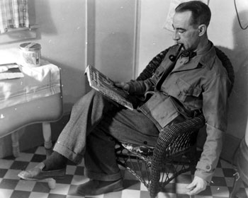 Claude prenant son auto-portrait dans sa cuisine de Mayo. Sa main est près du sol pour lui permettre d'appuyer sur le déclencheur de l'appareil photo.