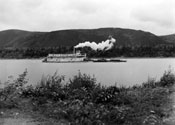 Claude a inscrit sur cette photo :"Prise par une journée grise, c'est pourquoi la photo manque de luminosité et d'éclat, mais il s'agit du bon vieux S.S. Yukon avançant en ronflant en amont de la rivière. La photo a été prise de la rive, juste en face de notre maison. Le bateau fera probablement un seul autre voyage cette saison, donc ce pourrait bien être notre dernière chance de le photographier - à vie." Août 1938.